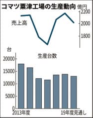コマツ粟津工場、建機生産3年ぶり減少へ 資源国・北米向け鈍る